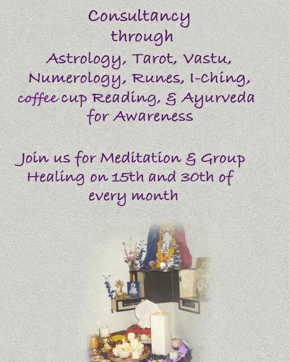 Note : Please take prior appointments for consultation and healing sessions.